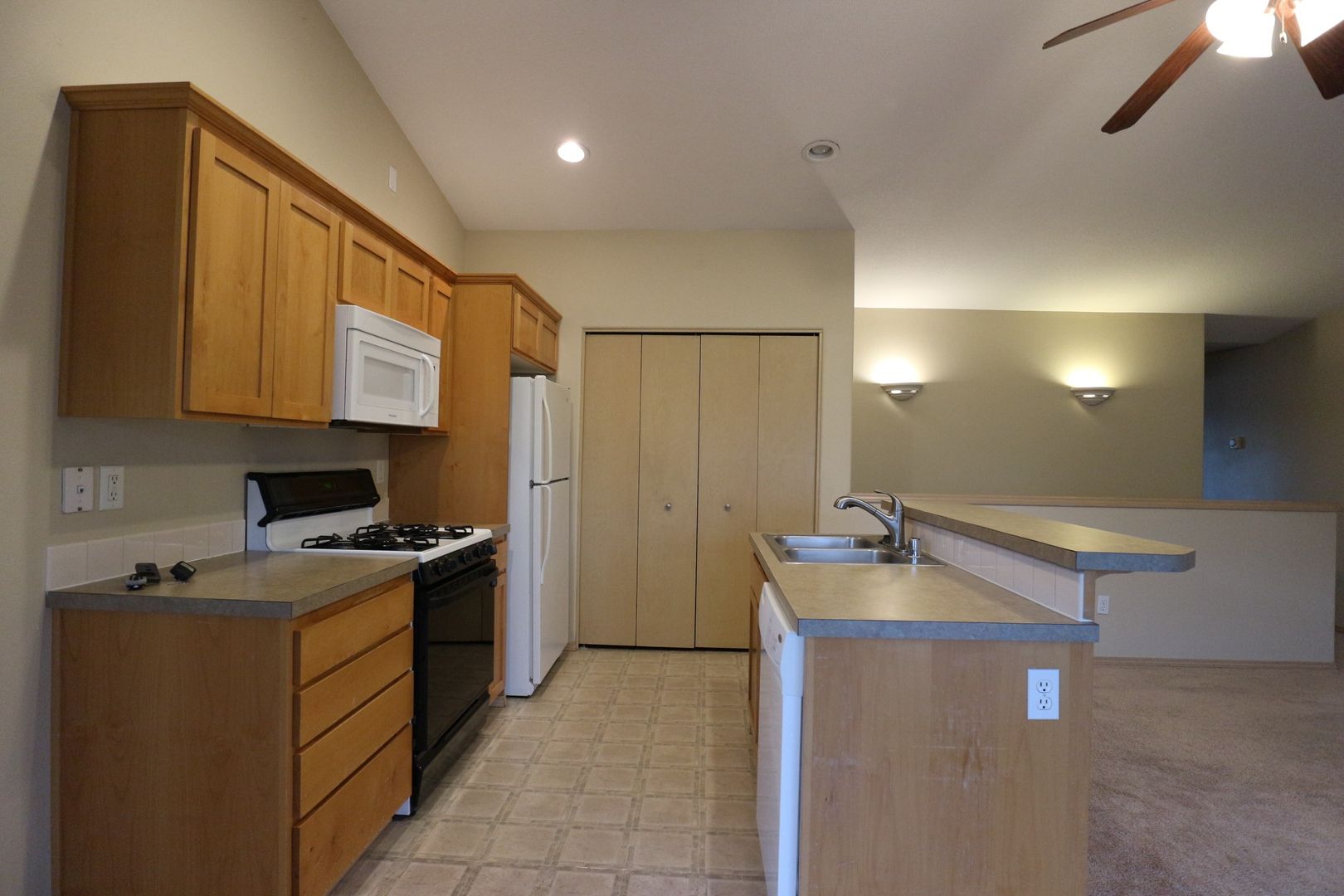 Two Story Duplex, 3 bedroom, 2 bath. Great room style living room with gas fireplace, dining, kitchen equipped with range, refrigerator, dishwasher and microwave. Electric wall heat. Lower level consists of two bedrooms, one bath and the laundry area with washer/dryer hookups. Upstairs consists of living room, kitchen, dining area, one bedroom and one bath. Double car garage with opener, fenced backyard with deck, approx. 1330 sq. ft., built in 2002, 98607. NO PETS